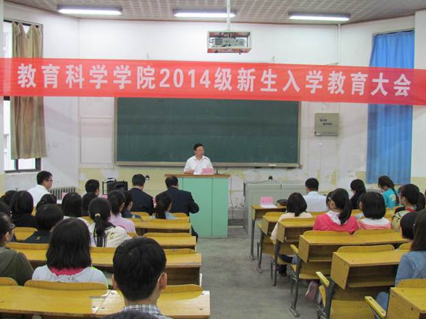 2014年9月13日上午,我院2014级新生入学教育大会在第三阶梯教室召开,院长张社争、副院长魏继宗、研究生秘书冯晓江、实验秘书曹殿波、教师代表石梅、辅导员高飞翔、王会青以及2014级120名本科生和13名研究生参加本次会议,大会由副书记杨文军主持。