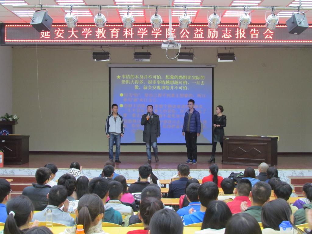 4月1日晚,我院邀请校友“点亮激情,照亮人生”的导师赵亮在外语学院小礼堂为我院14级学生作题为《令你失败的九大癌症》的励志报告会,报告会由我院党委副书记杨文军主持。