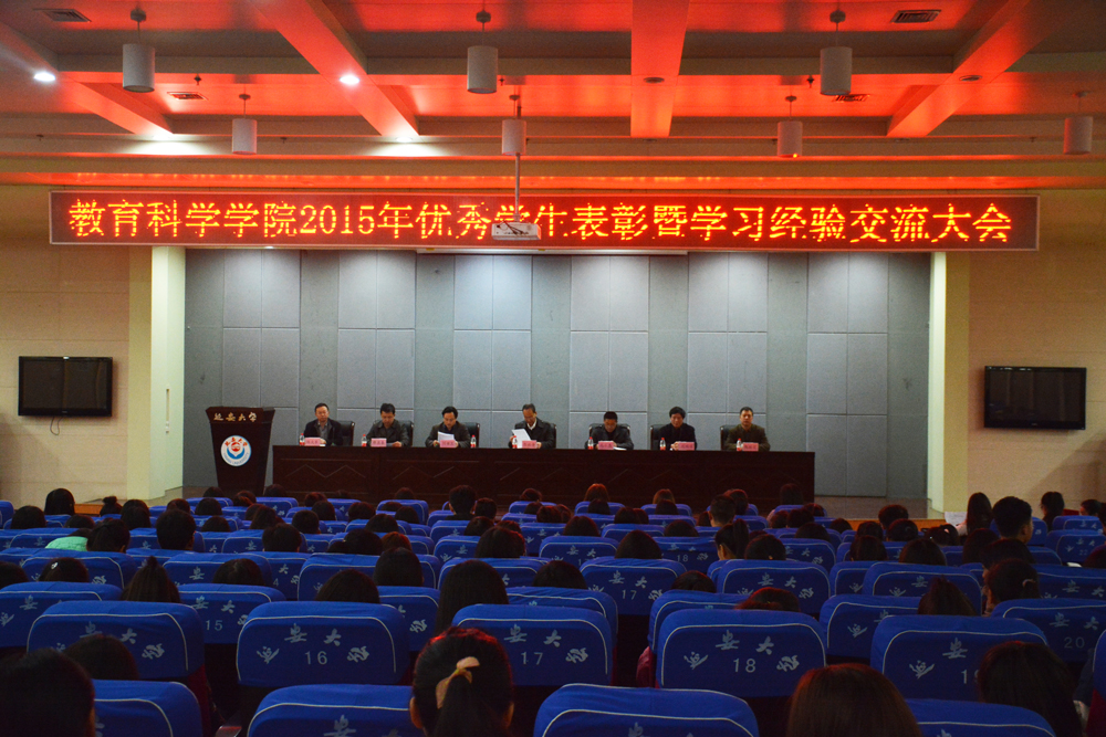 为了全面展现我院学风,激发同学们你追我赶,奋发向上的学习风气。2016年3月23日晚,我院于图书馆报告厅举办2015年优秀学生表彰暨学习经验交流大会。教务处薛苏秦副处长、学生处马小惠副处长以及学院领导班子等出席了本次大会。大会由副书记杨文军主持。