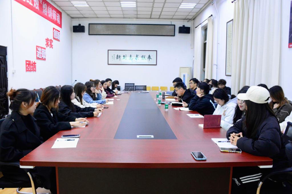 我院学生会指导老师王浩老师、辅导员张磊老师、陈智众学长、教科院学生组织全体干部参加座谈会,会议由学生会主席团成员万译阳主持。